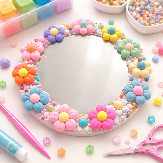 Tweens will design their own mini mirror using colorful clay, charms, and textures. This hands-on craft blends creativity and style, resulting in a fun, functional piece to take home.